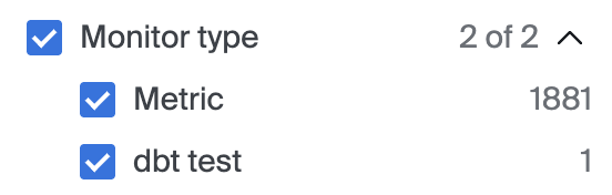 Monitor Type - A monitor type defines the category of observation a monitor performs (e.g., metric, rule, dbt test). This term is used to distinguish between different kinds of monitors.
